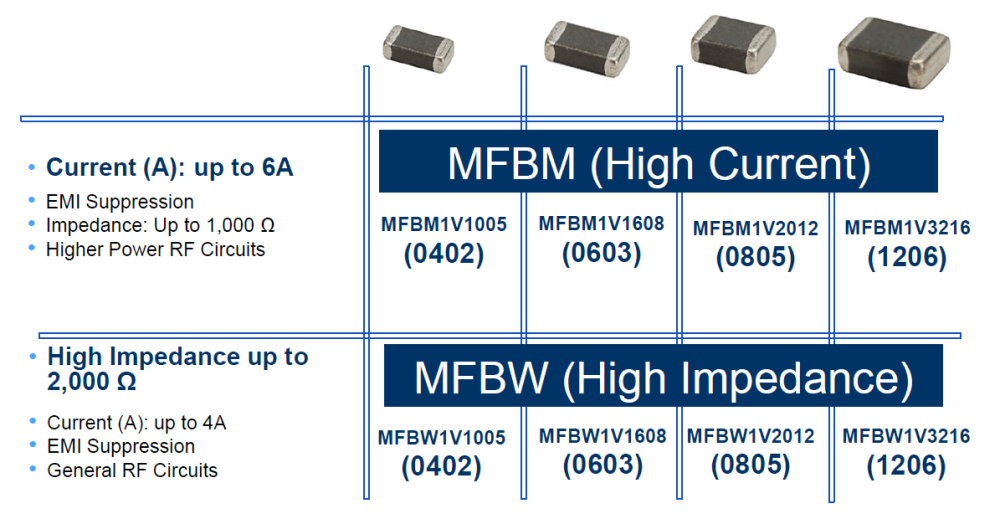 Eaton introduces a new commercial grade MFB series, a full line of multilayer ferrite beads. Used for high frequency EMI suppression of signal lines in high frequency RF circuits, they are ideal for applications requiring EMI noise suppression.